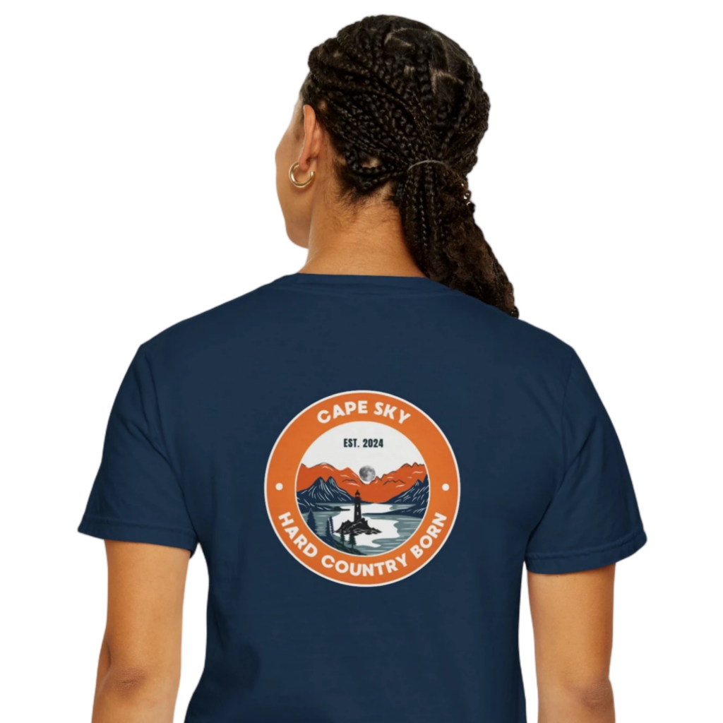 The ultimate round neck tee defines who you are. Made from the best cotton fabrics, featuring our new special weave process that allows your skin to breathe and not sweat. Cape Sky tee’s represent true islander apparel or for anyone born from hard country- from wind swept islands to rugged coast- you are mountain strong. Cape Sky is you Our tee’s feature our new double-weave pattern that allows your skin to breathe and not sweat. Portions of proceeds go toward our “always strong,” “always proud” wounded or impoverished military vets. See us donate.